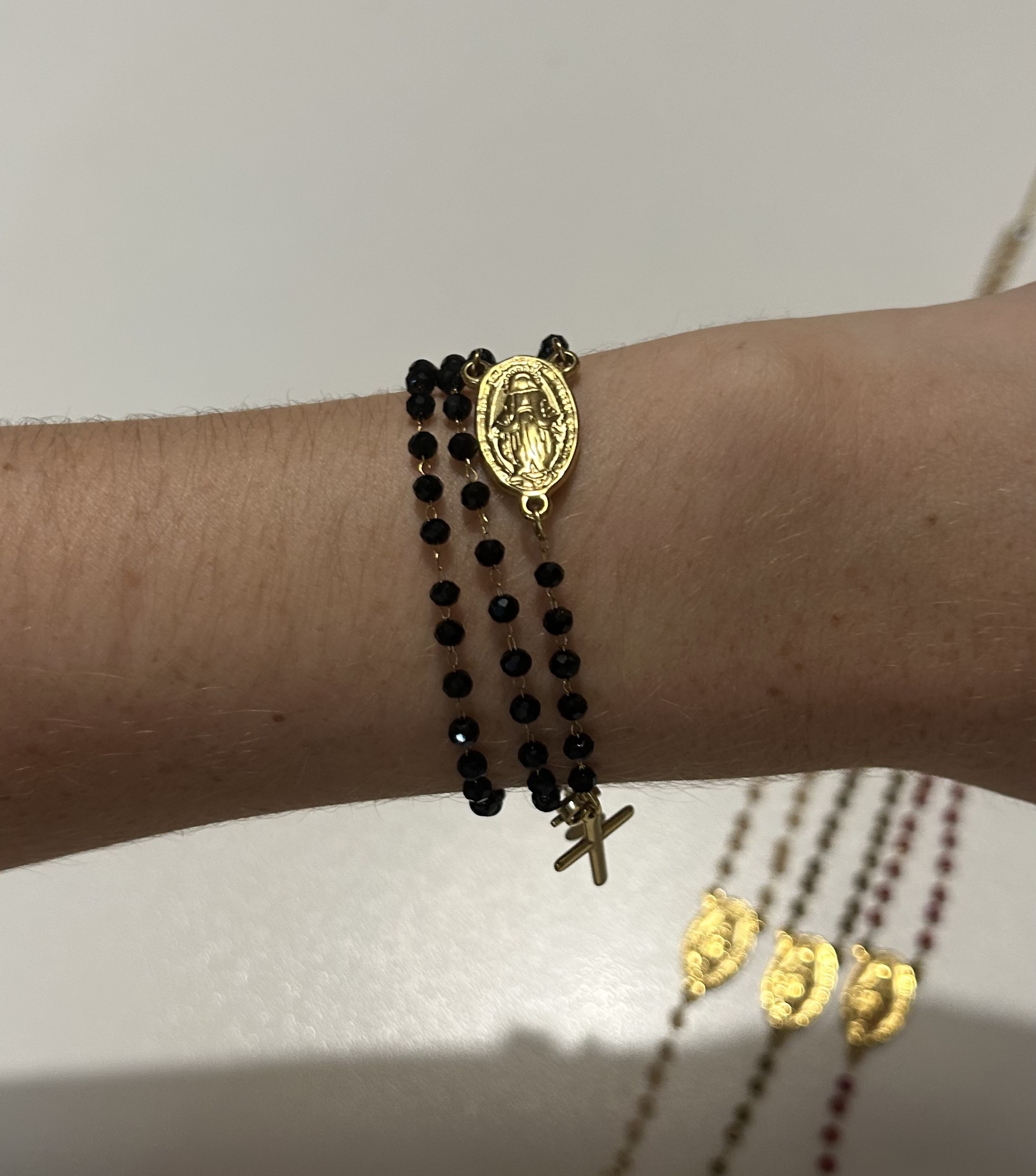 Con cada cuenta, con cada nudo, ponemos intención, respeto y esperanza, para que cada rosario sea una guía en tu camino hacia Dios.