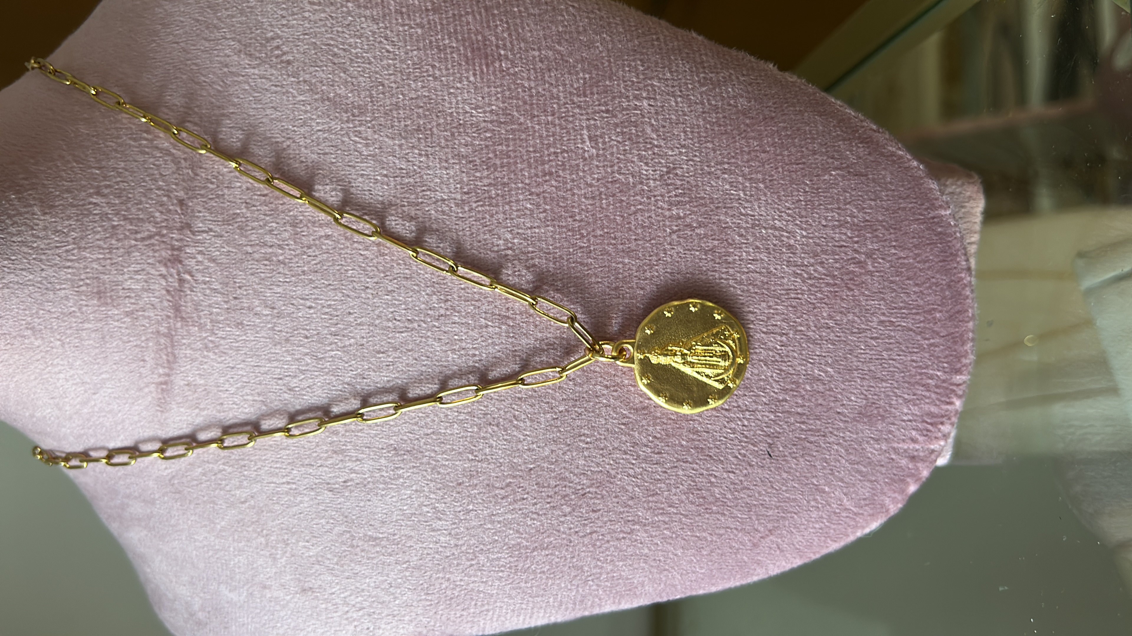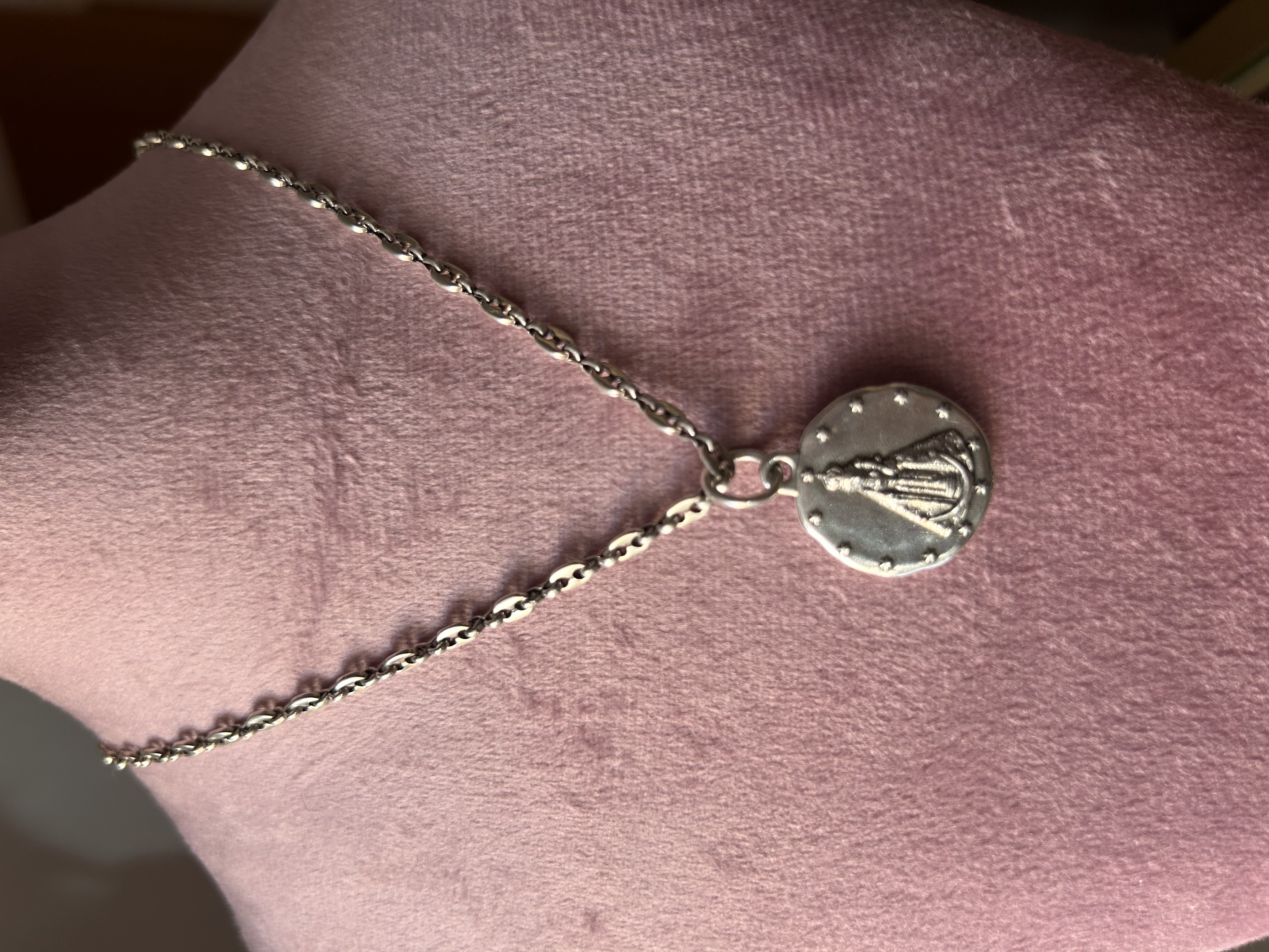 Collar compuesto por cadena de eslabones y medalla Virgen de la Fuensanta.