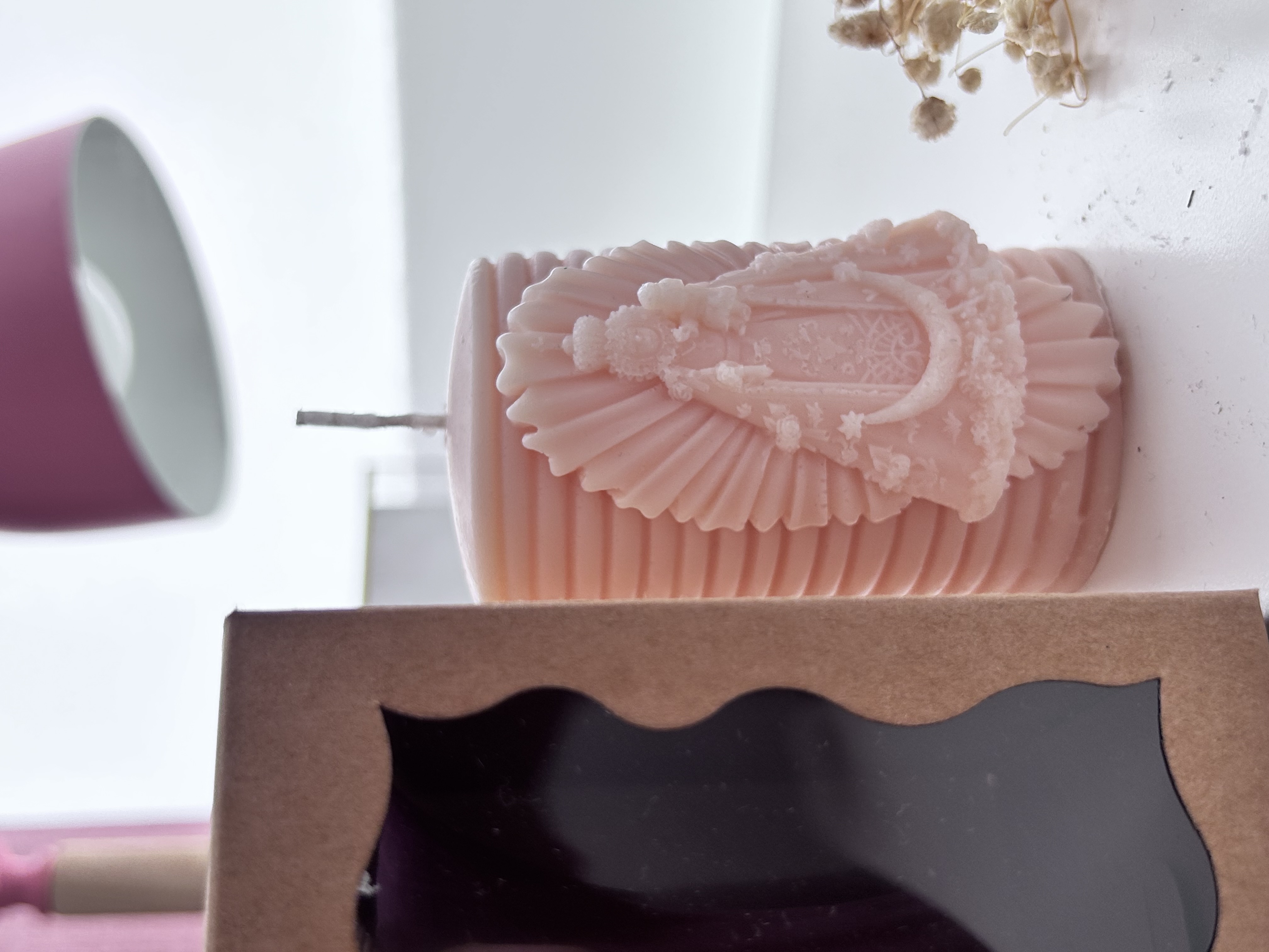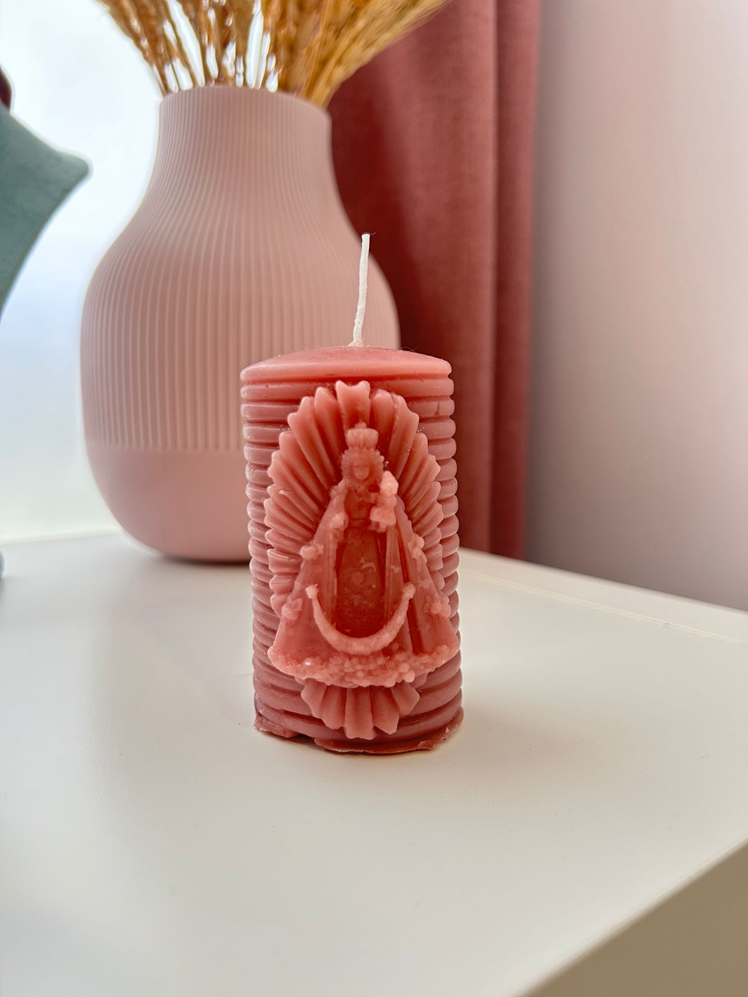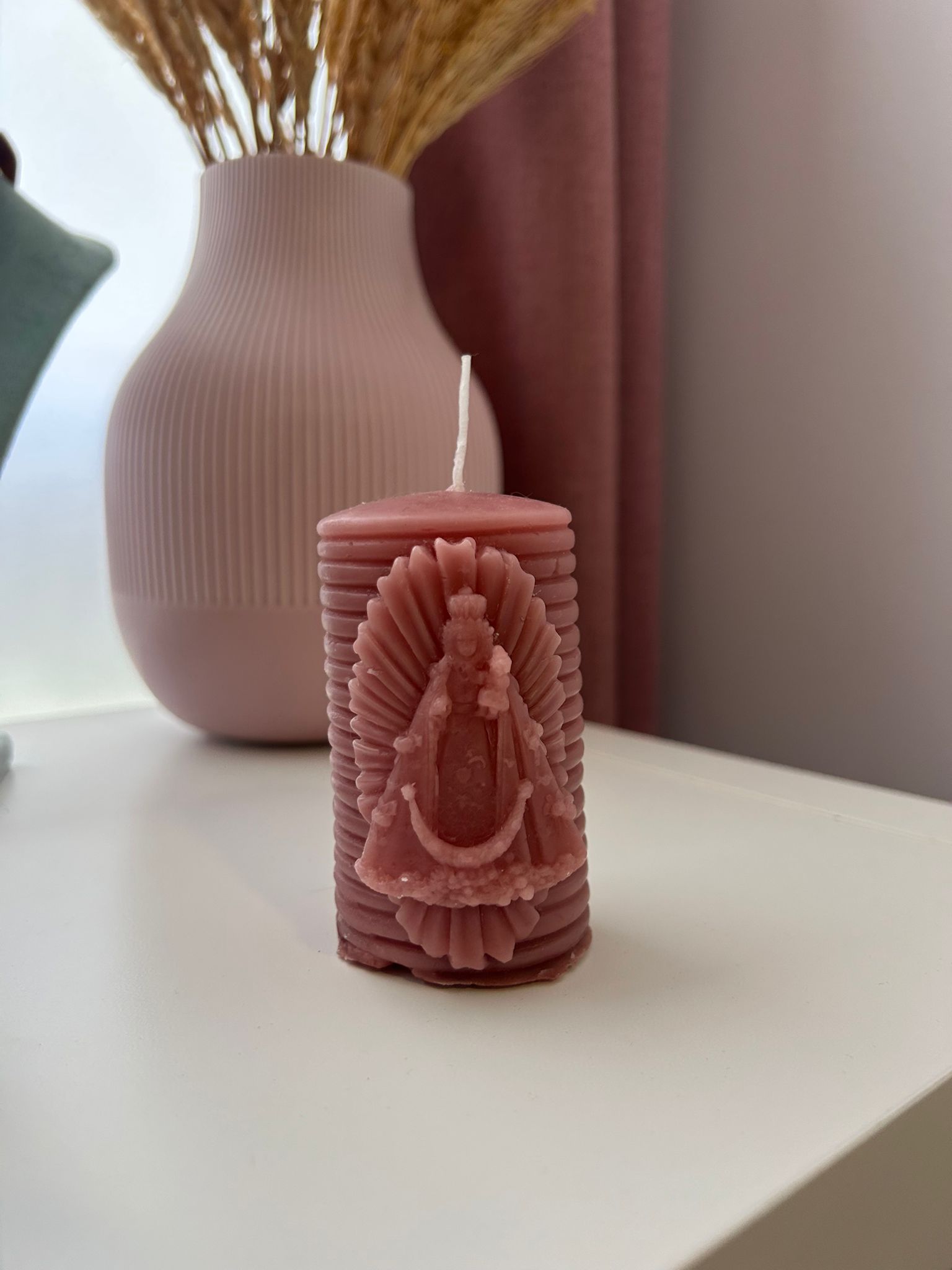 Velas de la Virgen de la Fuensanta, patrona de Murcia, de cera de calidad, hechas a mano artesanalmente.